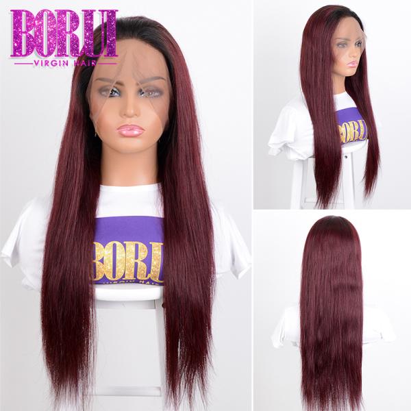 Pre Plucked Long Straight 99j Color Virgin Hair Lace Frontal Wig With Baby Hair