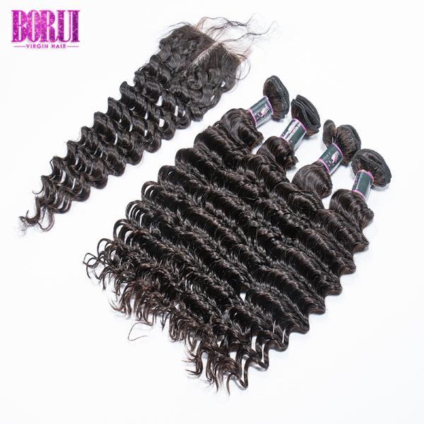 Pre Plucked Deep Wave 4x4 Lace Closure With Baby Hair Human Hair Extention