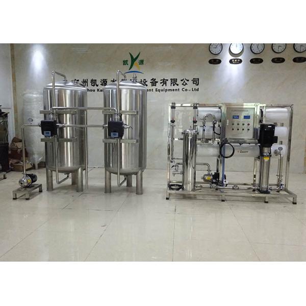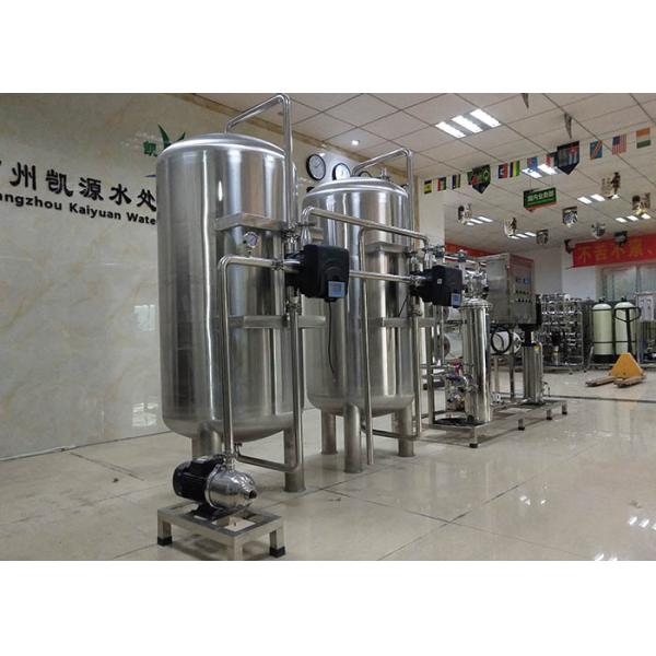 Reverse osmosis system is using city water as raw water, then treat water by Pre-filter (water softener is optional), reverse osmosis membrane. It can remove particle, colloid, organic impurity, heavy metal ion, bacteria, virus in water, and it can also remove 99% dissolved salt. The whole system desalination rate can reach 96%-99% to make permeated water conductivity<10 us/cm. Dense water also won’t polluted environment. Reverse osmosis equipment no need to consider about input water quality too much. And the main features of RO equipment is no need to do any regeneration, it can be keep stable for long time.
