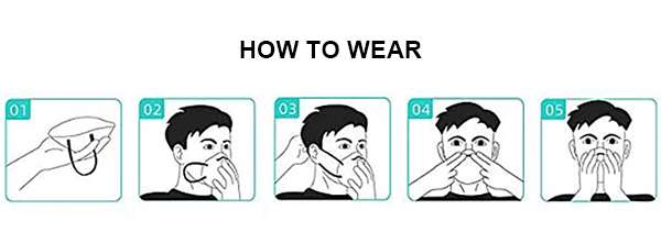 5. Check fo proper wear: Press the mask lightly with both hands and breathe deliberately. Air should not leak from the edge of the mak
