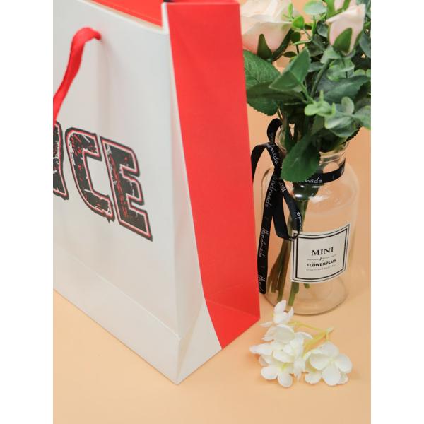 Red And White Cardboard Paper Bag With Logo And Paper Ropes For Gift Package