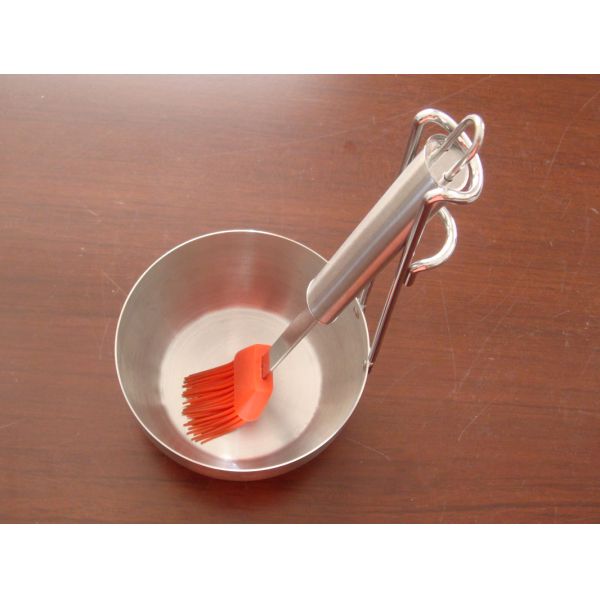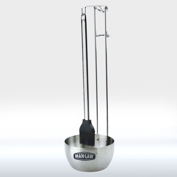 At ManLaw people love its sauces and marinades, that's why ManLaw created a huge pot and basting brush to slather it on. This set includes a stainless steel pot and extra long 13" silicone basting brush with stainless steel handle. Designed to hold a mass of liquids and hang from the grill or prep table. There is a hanger for the basting brush over the pot opening to keep it all together.
