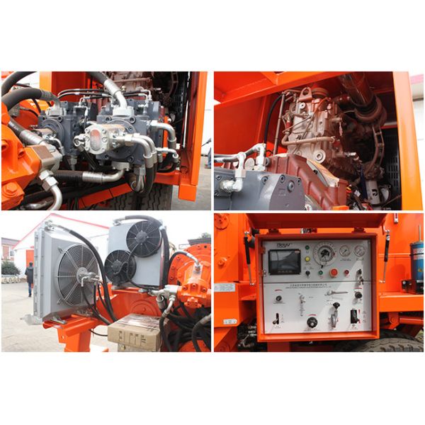 Hydraulic dynamometer with set-point and automatic control of maximum pull Hydraulic oil cooling system Control instruments for hydraulic system and diesel engine On board reel winder with automatic level wind, suitable for standard reel mod. 1400 and 1600 Hydraulic front stabilizer Grounding connection point |