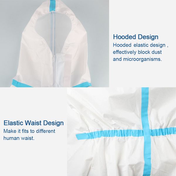 1.Made of lightweight spunbond meltblown polypropylene(SMS)to provide protection, duarlity for use in hazardous environments for working and includes a multitude of comfort features.