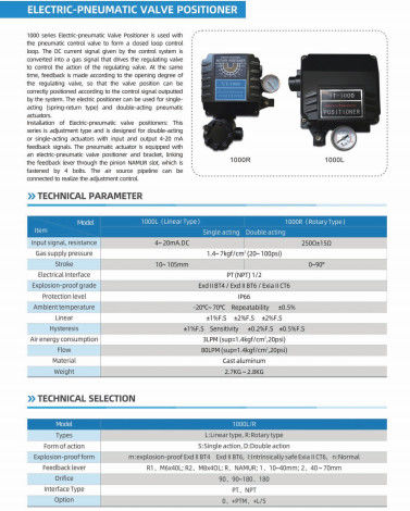 | Product name: | YT1000 4-20mA Pneumatic Positioner E/P Positioner China Supplier |