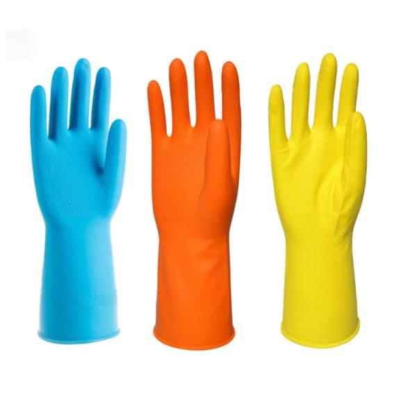 heavry weight Latex household gloves have a high weight and a relatively thick thickness. It will be more waterproof, oil-proof, acid-base detergent, etc. It also increases the service life. Thereby reducing the average cost of use. Latex household cleaning gloves feel better than PVC household gloves and nitrile rubber household gloves. Softer. The stretchability is better. Therefore, it is more popular in the household gloves market. Gloves can be made into gloves with different latex content. In order to meet the needs of different customers. The price of latex household gloves with low latex content will be relatively cheaper. High quality latex household cleaning gloves are more popular in South America, North America and Europe.