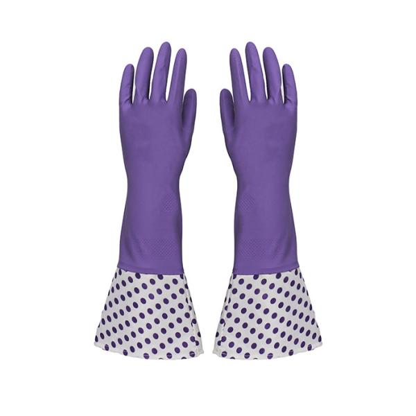 This grafted sleeve glove is made of ordinary velvet household gloves and PVC waterproof cloth. The glove part is a pair of 60g weight. There is no difference in size. There is only one M size. The color of the gloves can be chosen. There are blue, pink, yellow, purple, green, and so on. The extended sleeve is made of PVC waterproof cloth. This fabric is waterproof. Therefore, even when water is sprayed on it, it will not wet or stain the clothes. Customers' own logo or design can be printed on the tarp. This way the entire glove looks very drifting. Popular with young ladies.