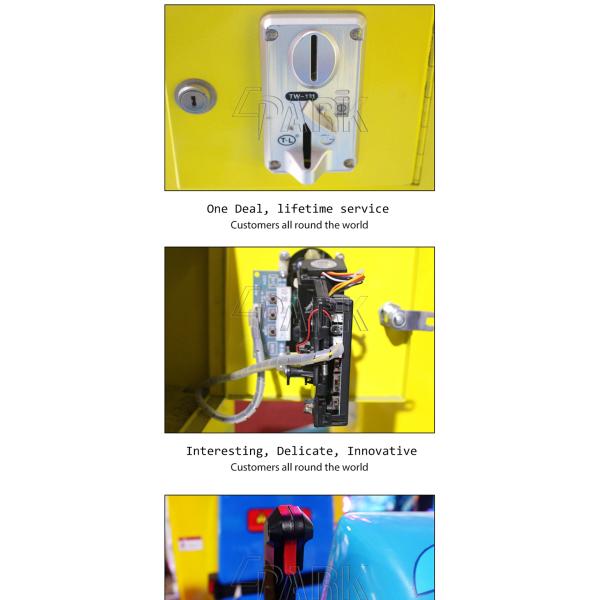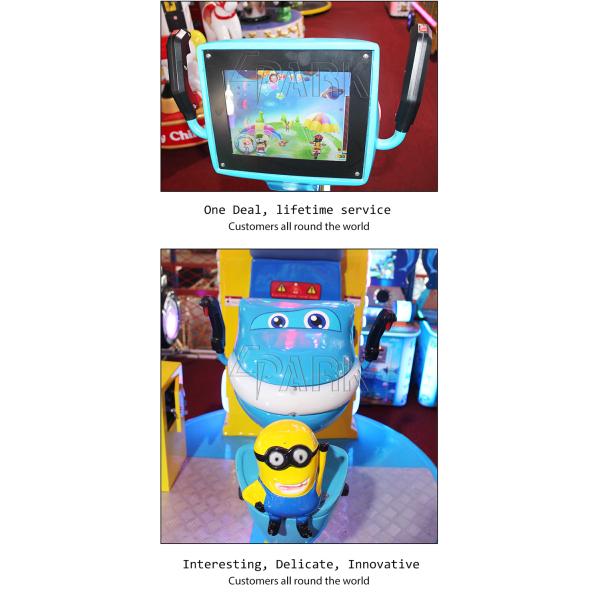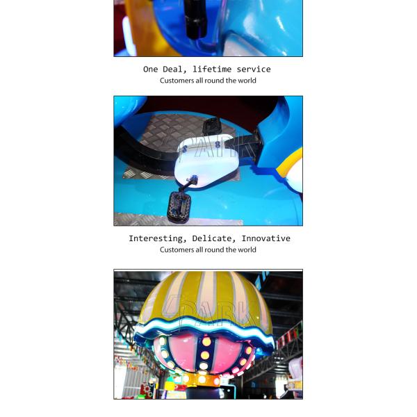 tone of game start will be sounded 2.The rides will move up and down and turn around with the pleasant music during the game 3.When time over, the rides will stop and back to original location |