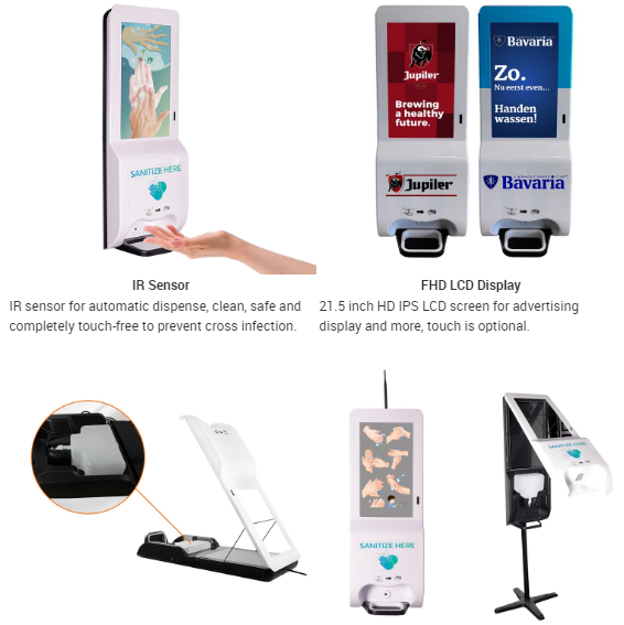 This hand clear lcd digital signage is one indoor used screen, it will auto-play videos or photos in a loop when power on and controlled by the motion sensor. It is usually using in the supermarket, retail shop, Fair, Salon, etc. Or combined different displays together for promotion and advertising. Wireless Digital Signage Dispenser is a device that can display the advertising contents in image or video file, and automatically dispense the Sanitizer or Liquid Soap at the same time. Comparing to the traditional Digital Signage, this smart device can catch more target audience. The Content Management Server allows you to control all wireless digital signage by any internet-connected computer from anywhere in the world. The automatic dispenser can dispense the hand sanitizer or liquid hand soap without touch to avoid any cross-infection.