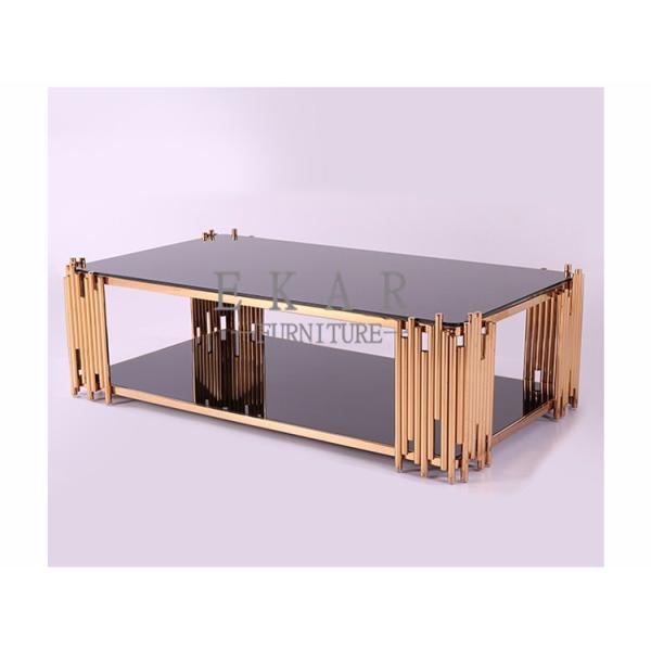 Buy Rose Golden Metal Table Leg and Tempered Glass Living Room Coffee Table at wholesale prices