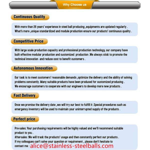 | Material: | 201 / 304 / 316 Stainless Steel Balls |
