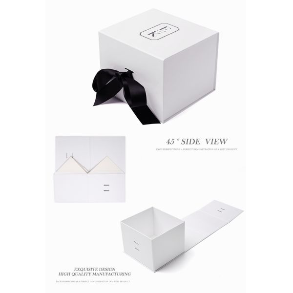 White Square Foldable Paper Gift Box With Ribbon Bow Magnetic Closure