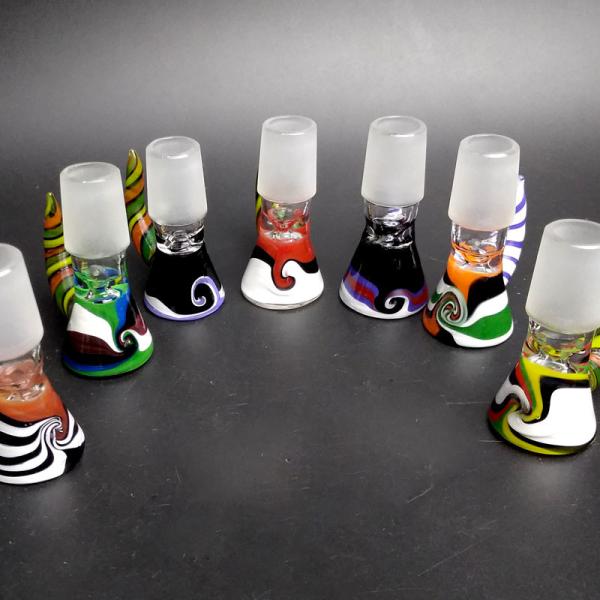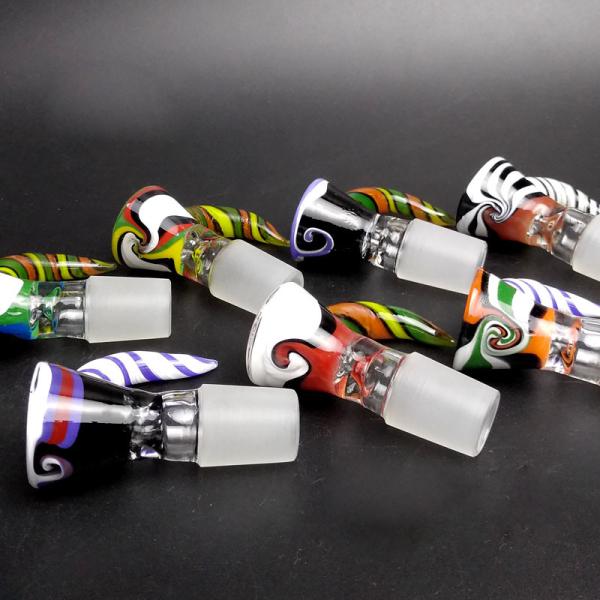 14mm Male Wig Wag Glass Bowls with Handle Colored Smoking Bong Bowls Piece for Tobacco Glass Water Pipes Bongs Dab Rigs