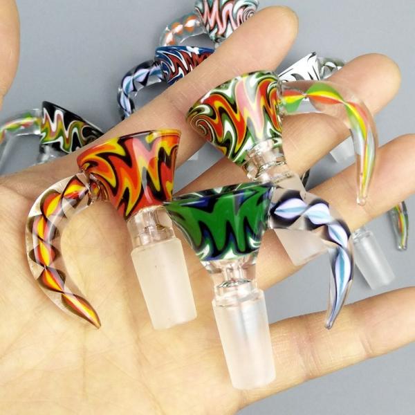 Bowl for Bongs with Handle Beautiful Slide Bowl Piece Male 14mm Joint Smoking Accessories for Bongs Glass Bong Accessories
