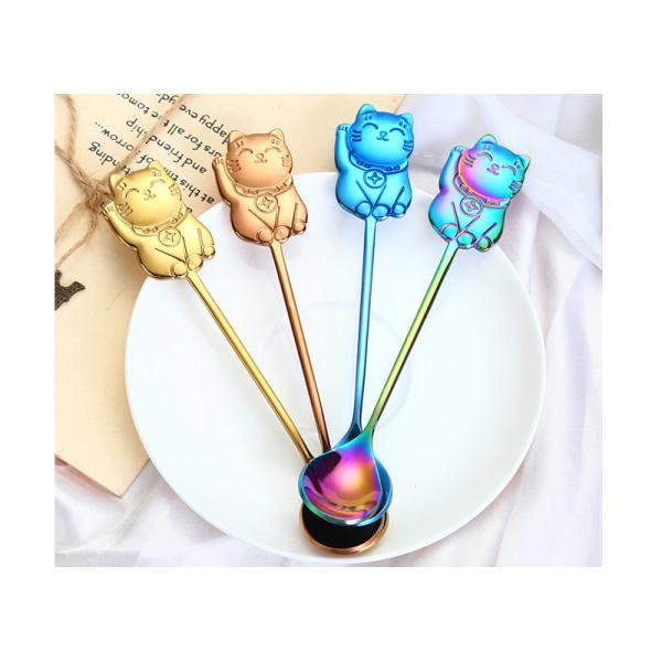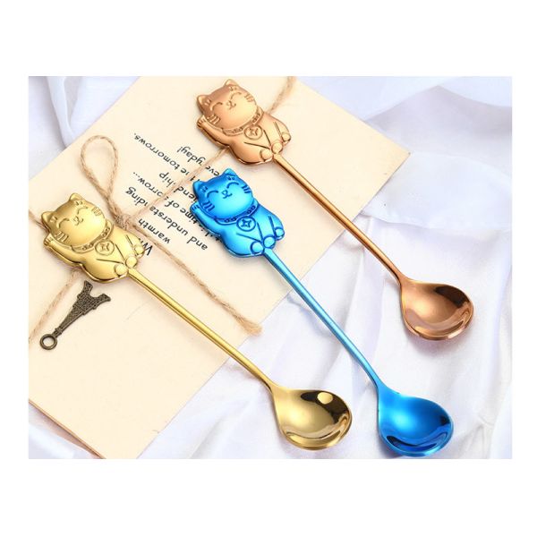 Creative 304 Stainless Steel Cartoon Cai Cat Spoon Cute Cat Juice Spoon Gift Coffee Stirring Spoon Ice Cream Ice Cream Dessert Spoon