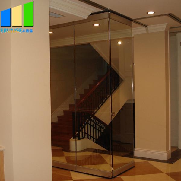 Glass movable partition is composed of many single panels.Each panel is equipped with single or two hanging rollers.It depends on the horizontal hanging roller to make the partition panel hanging along the track.The vertical contact points of each single panel are connected by concave and convex positions.The seal rubbers are embedded and panel top and bottom parts are equipped with a retractable mechanism.