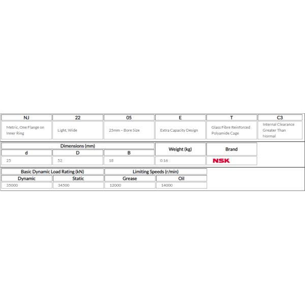 Product Description NJ 22 05 E T C3 Metric, One Flange on Inner