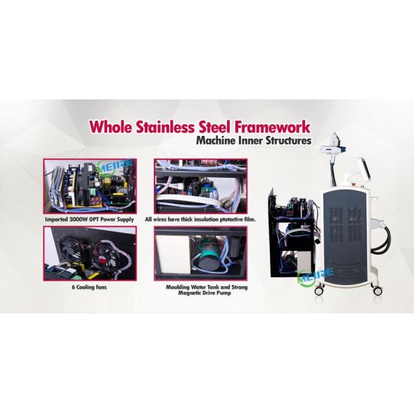 This is our hottest selling OPT multifunctional beauty machine. It combined the function of OPT SHR, IPL &RF, and Q Switched Nd: Yag Laser. You can get so many treatment results with only one machine. The entire cycling water cooling system makes the stable working of this machine. elight(ipl rf) beauty equipment