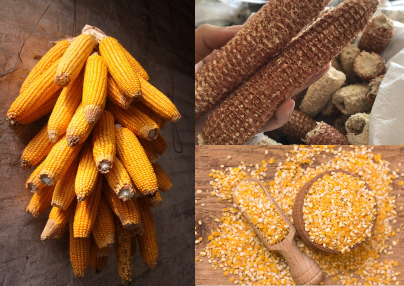 It can feed directly with corn kernels .If you want corn cob,it cannot be grind directly.