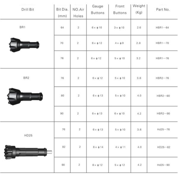 1. Deliver maximum energy to drilling bit, fast drilling speed and low air consumption due to the special inner structure of HD series DTH hammer designed according to newest rock drilling theory.