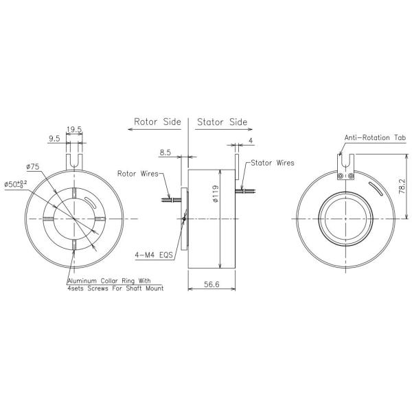 Multi Channel Metal 50mm 300rpm Through Hole Slip Ring