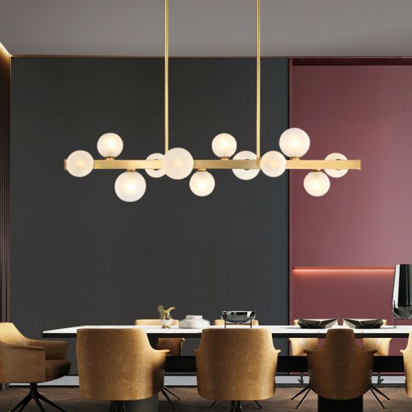This pendant light is mainly made of iron lamp body and Glass ball lampshade with high quality. It is easy to install. Its light source is led Bulbs.