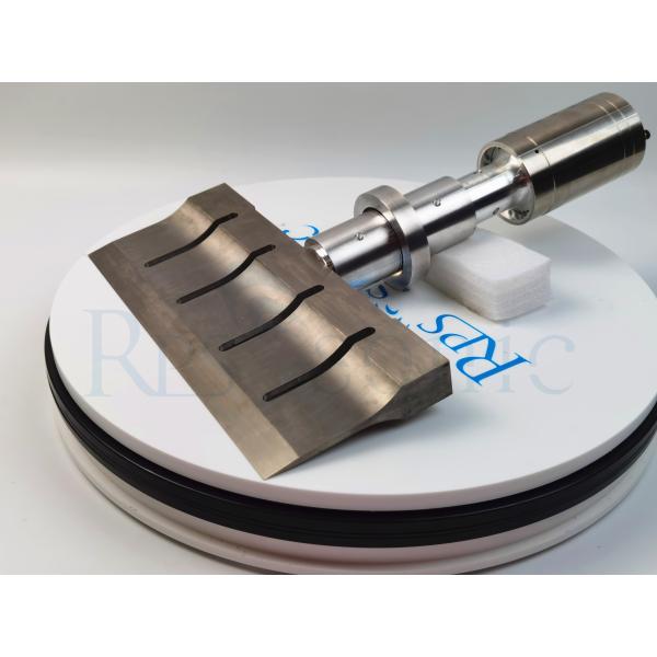 The basic structure of the acoustic wave cutting machine: Ultrasonic transducer, ultrasonic horn, ultrasonic cutter, ultrasonic generator.