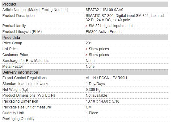 | Alternate Part Number | 6ES7321-1BL00-0AA0 |