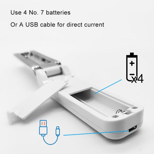 3. Powered by Micro USB cable or 4 1.5V AAA batteries. It is safe