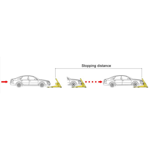 When the vehicle collides with the device, the buffer absorption part can absorb part of the impact force, and the rest of the impact force will be transferred to the rubber pad at the bottom. The friction between the rubber pad and the ground increases, forcing the vehicle to stop.