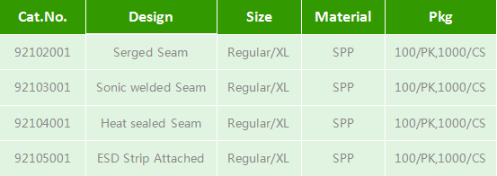 Multiple style options add to the versatility of this product: serged seams for added traction and snug fit for dry or moist environments; heat-sealed seam for absolute particulate and biological containment; conductive shoe covers for environments where ESD is a concern and sonic welded seams provide complete protection.