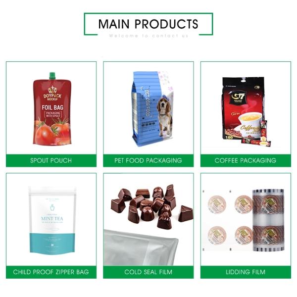 | 7. Can incorporate re-closable front zipper,valve,tin tie and easy tear with laser scoring | |||