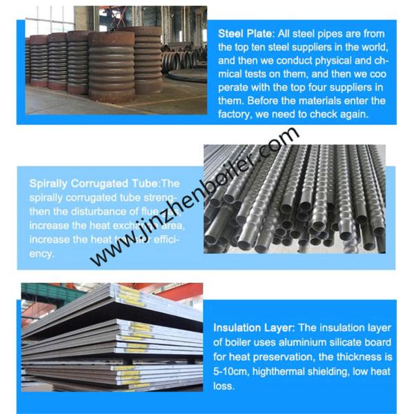 Special Structure and High Efficiency: All system is well mounted on the base, its system is portable. The users no need to consider the pipeline installation, wire connection. After receiving the goods, just supply water, electricity, fuel. It is equipped with renowned brand burners(BALTUR, RIELLO, HOFAMAT, ECOFLAM), also finned tube type economizer can ensure boiler's thermal efficiency up to 95%.