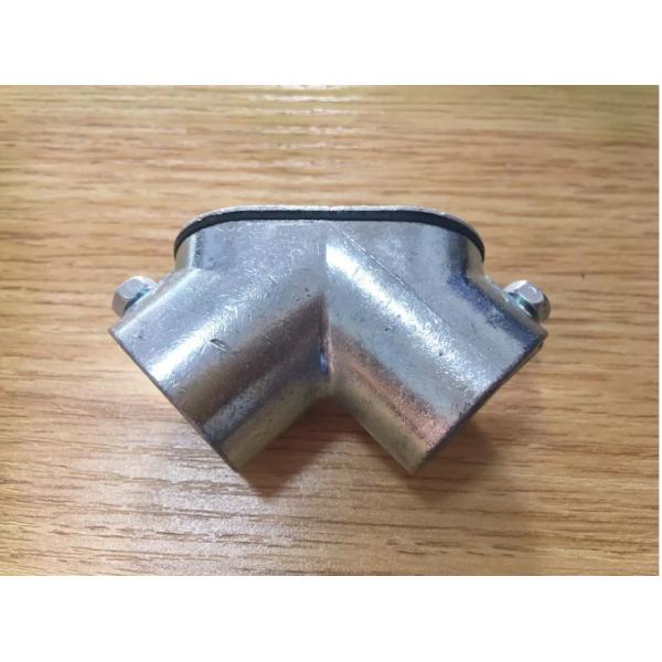 The set screw pull elbow has removable cover for providing easy access to facilitate wire pulling. The EMT elbow is die cast of high-strength zinc alloy and cover zinc plated for corrosion resistance.
