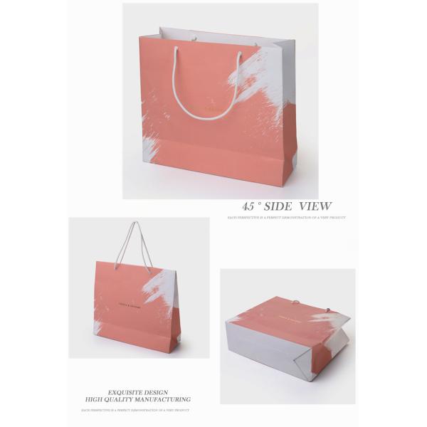 The paper bags with handle are made using fine craftsmanship. We use different materials of paper promotional shopping bags for different parts. Body material of paper bag for shopping is coated paper, bottom and sleeve liner grey paper, handle cotton rope. Finishing techniques of gift packaging bag including gloss or matte lamination, UV coating, embossment, gold/silver stamping. Custom Logo Custom gift paper bags with logo are suitable for all kinds of gifts packing. Gifts wrapped up in our unique paper bag can better present their beauty and meaning. With special custom packaging, we provide a wide variety of paper shopping bags, such as birthday gift bags, holiday gift bags, Christmas gift bags, small paper bags, and etc. Please contact us for further information.