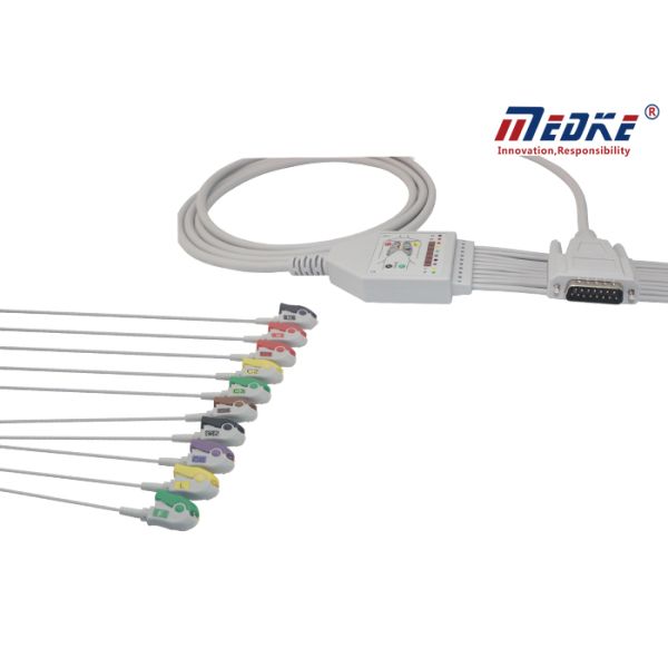One Piece Nihon Kohden EKG Cable With 10 Leadwires IEC Fixed Pinch BJ-903D