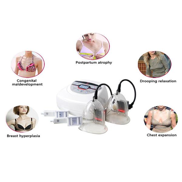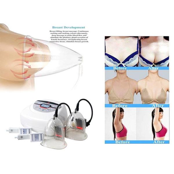Specially designed vacuum pump can enlarge breasts, without the pains and any health risks. It is not a pushed-up or filled breast plumping bra or silicone implant. It can make your breasts beautiful and natural by the physiological cycle of females