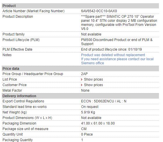 | Alternate Part Number | 6AV6542-0CC10-0AX0 |