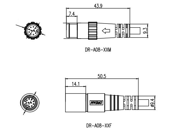 | Male Size | Φ12.0*43.9mm | Cable Size | 28AWG-22AWG |