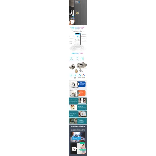 1. Unlock 5 ways: ttlock app (Bluetooth unlock and send ekeys), card, key, wifi (optional), remote