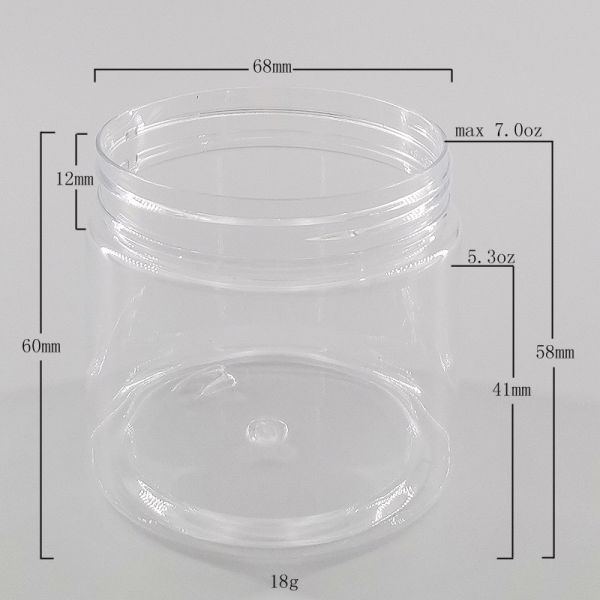 The main material of this jar is PET, the main material of the lid is PP, the jar is transparent, the color of the lid is gray, and the type of lid is screw cap.