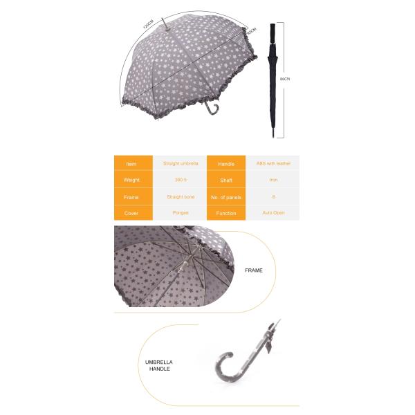 - Non-automatic: you have to hold the stick umbrella with fashion leather hooked handle and push up to open it. Very solid and stable but flexible.