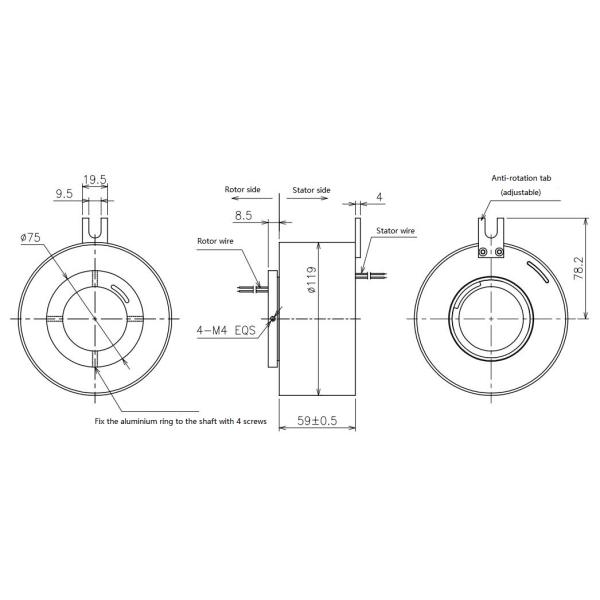 We called through hole slip ring also as hollow shaft slip ring ,CENO can design this type with hole size from 3mm to 5000mm are optional.Various signal such as Ethernet,USB,HDMI,SDI,Canbus profibus and power are capable to be integrated into one slip rings.