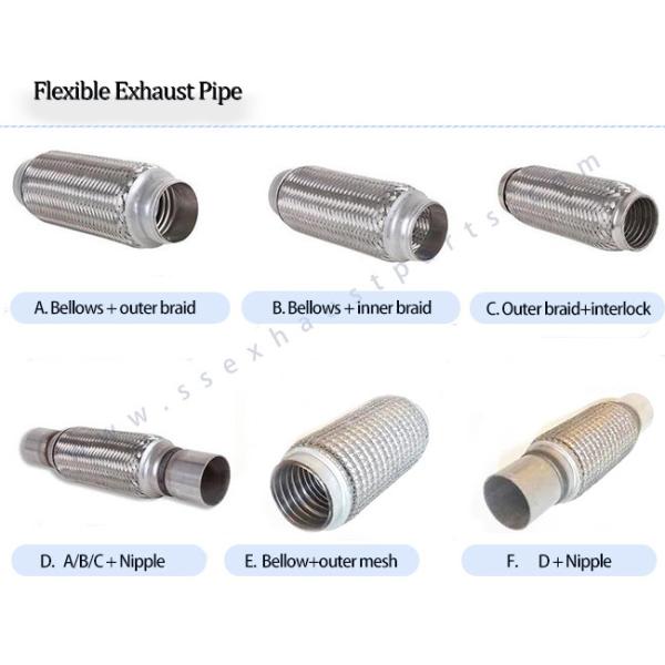 There're many types for the flexible exhaust pipe , usually there're five models, below, single braid, double braid inner and outer, with interlock, with welded tube, and mesh braided pipe.