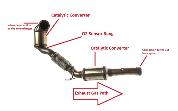 The downpipe on your turbocharged vehicle is directing the exhaust gases out of the turbine housing into the exhaust system. An aftermarket downpipe will typically be larger in diameter and either uses a high-flowing catalytic converter or remove the catalytic converter altogether.