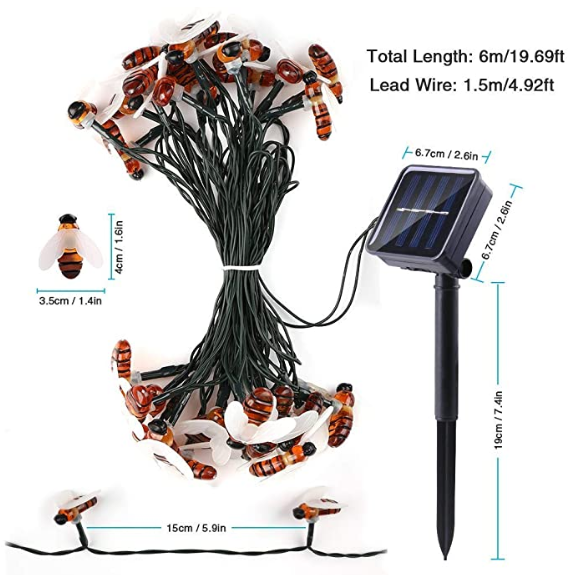 Honeybees Solar Garden LightsSolar String Lights Waterproof Fairy Lights For Patio