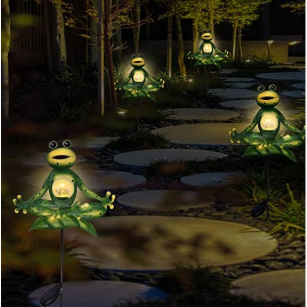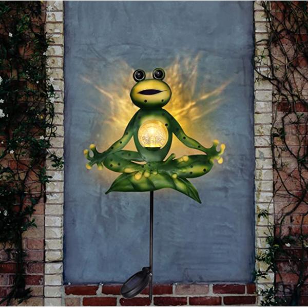 2. Unique Design: Sitting and putting hands on legs, the cute yoga frog stake makes the garden more vivid and bright, whether it is day or night can be well decorated garden.