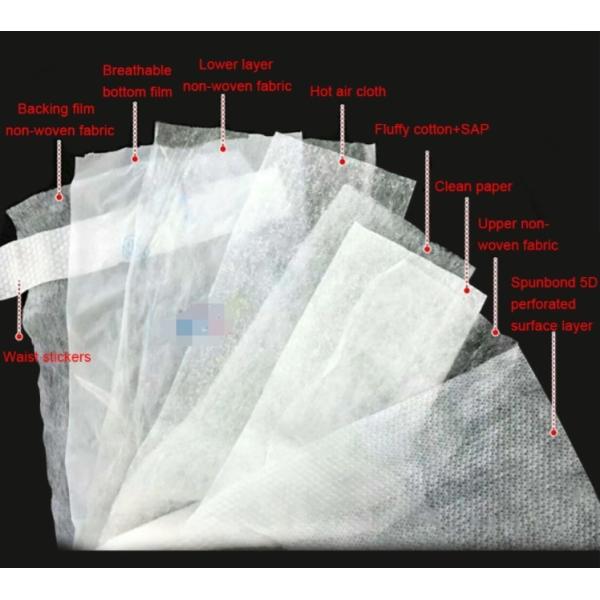 1. Clothlike/Cotton backsheet / PE back film + Magic tapes/ PP tapes, Leak guard