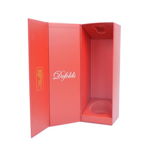 This box with magnet lid and EVA foam in the two short side of the box to keep the wine bottle not shake inside.