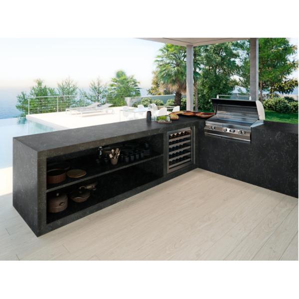 Artificial Quartz Stone compounded with 93% natural quartz and 7% resin. This model is really sought after because it is a marble-looking quartz. Additionally, the color black makes it sophisticated and timeless at the same time.